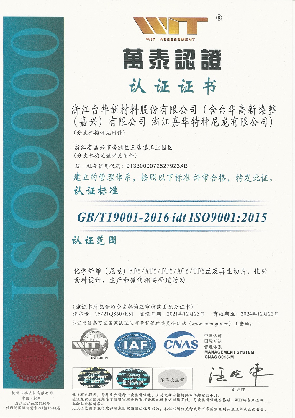 臺(tái)華新材(江蘇)ISO9001