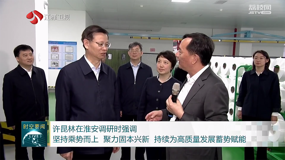 5月8日,江蘇省委副書記、省長許昆林來到臺華江蘇生產(chǎn)基地,調(diào)研臺華新材綠色多功能錦綸新材料一體化項目,關(guān)心關(guān)注企業(yè)生產(chǎn)經(jīng)營及未來發(fā)展。江蘇省政府秘書長呂德明,淮安市委書記史志軍、常務(wù)副市長林小明、洪澤區(qū)委書記沈曉紅等領(lǐng)導(dǎo)陪同調(diào)研。公司總裁沈衛(wèi)鋒熱情接待并匯報工作。