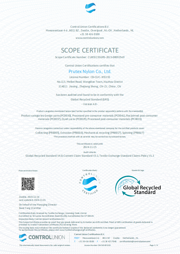 嘉華尼龍 GRS 認(rèn)證