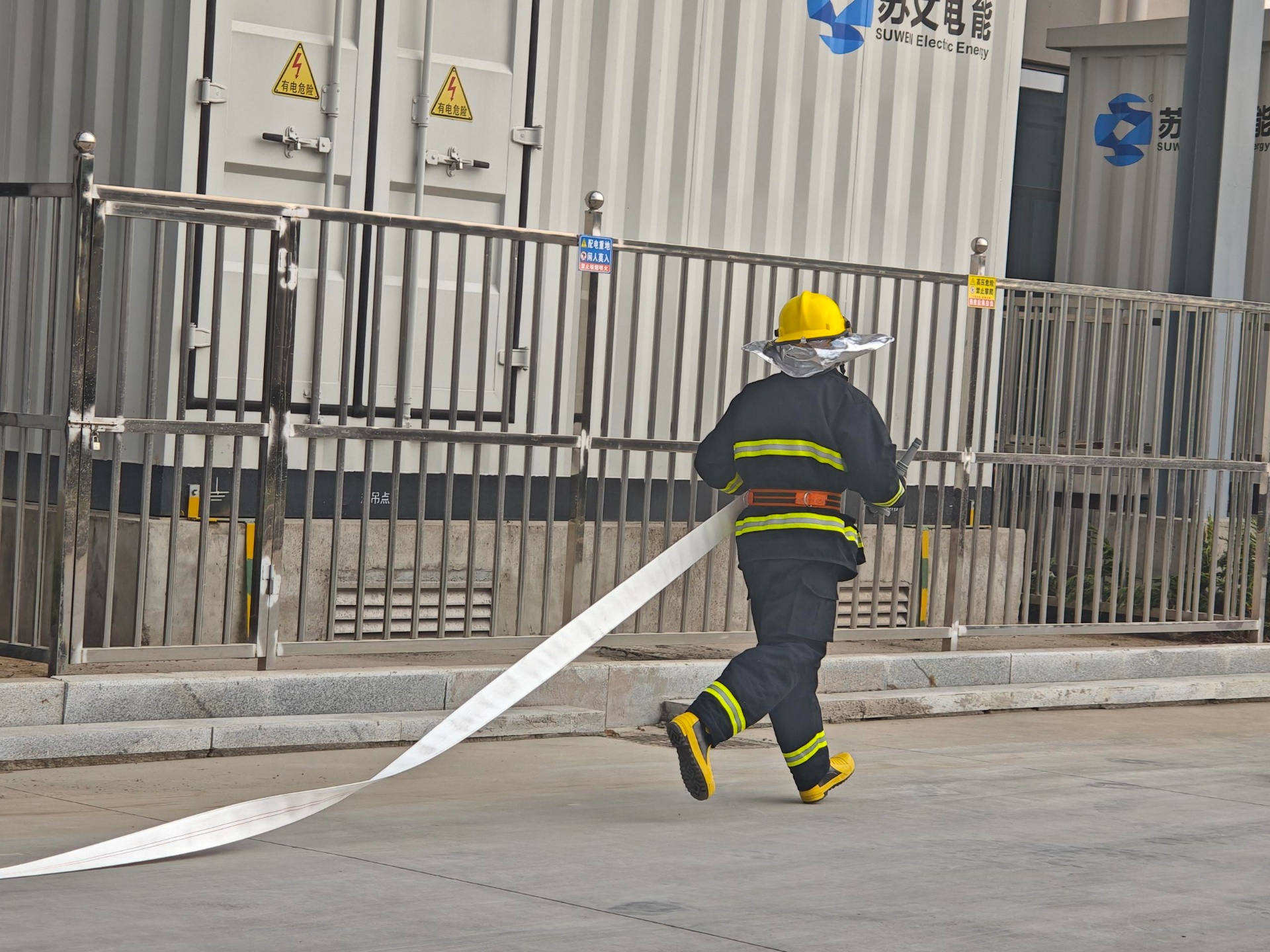 11月22日,在江蘇生產(chǎn)基地舉辦了消防技能比武大賽,各部門共18支隊伍積極參與。比賽形式為兩人一組計時賽,按規(guī)定要求穿戴好消防作戰(zhàn)服,配合展開水帶連接槍頭和消火栓,以及收好水帶放置到指定位置。